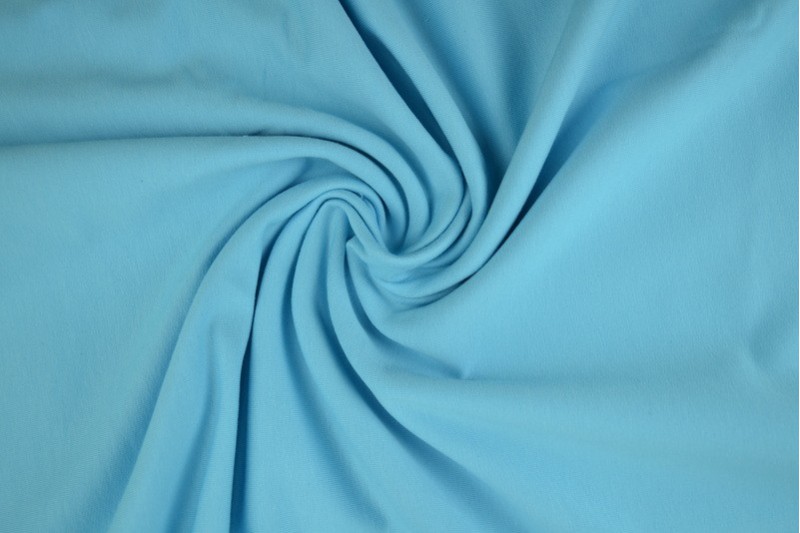 Aqua blauw French Terry is een stof gemaakt van 95% Katoen en 5% Elasthan. Deze stof wordt vaak gebruikt voor het maken van kleding zoals sweaters en joggingspakken. Deze stof staat ook wel bekend onder de naam joggingstof. Deze stof heeft een breedte van 150cm en een gewicht van 250 gram per m2.
