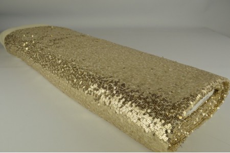 Champagne paillettenstof is een stof gemaakt van 100% Polyester. Deze stof wordt vaak gebruikt voor het maken van feestelijke kleding. Daarnaast kan deze stof goed gebruikt worden als decoratiestof voor versiering en aankleding. Deze stof heeft een breedte van 140cm en een gewicht van 185 gram per m2.