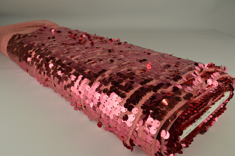 Paillettenstof – Grote pailletten – Zalmroze