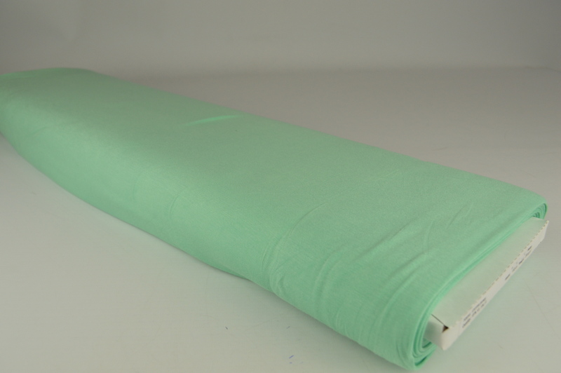 Mintgroen viscose tricot is een stof gemaakt van 95% Viscose en 5% Elasthan. Deze stof wordt vaak gebruikt voor het maken van t-shirts. Deze stof staat ook wel bekend onder de naam viscose jersey. Deze stof heeft een breedte van 150cm en een gewicht van 200 gram per m2.