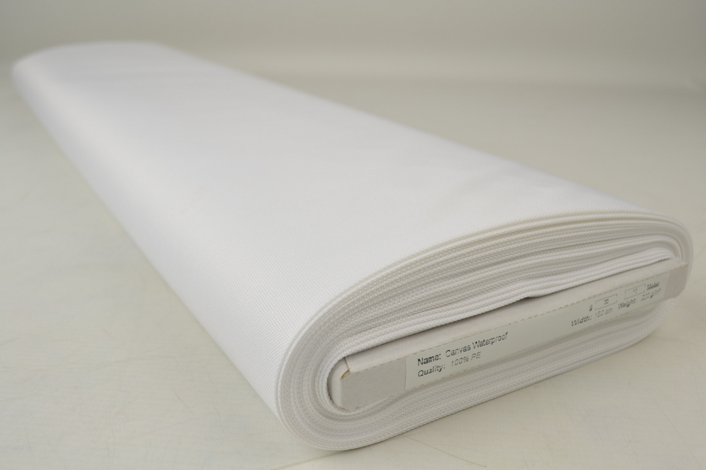 Witte waterafstotende canvas stof met grove weefstructuur, waterafstotend en geschikt voor afdekzeilen en outdoor Waterafstotende canvas stof &#...